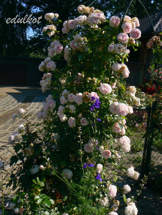 Hodowca: Łukasz Rojewski, Typ: pnąca, Kwiaty: perłowo-różowe, pełne, średnie, 6-8 cm, obsypana kwiatkami kilka razy w sezonie Zapach silny Wielkość: wys. 2-3 m, szer. 0,8-1 m, Mrozoodporność: wysoka, na choroby odporna, preferuje mocno nasłonecznione stanowiska,