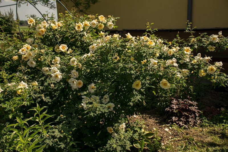 W wiejskim apogeum rozkwitu Fruhlingsgold. A zapach... Tyle że idiotycznie posadziłam ją pod samym płotem.