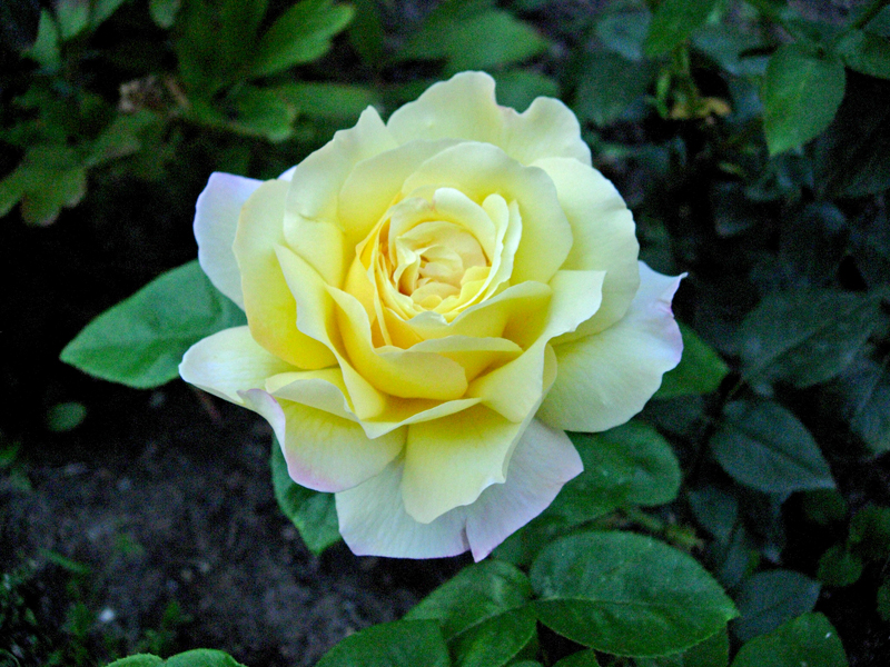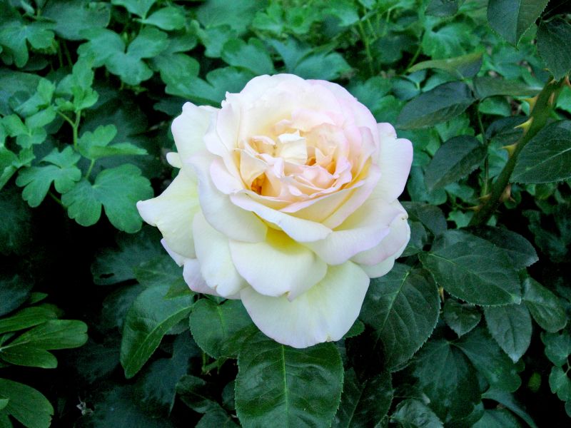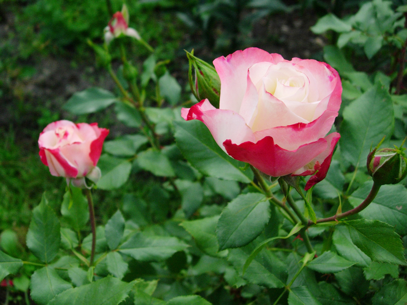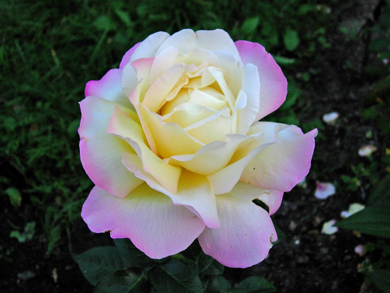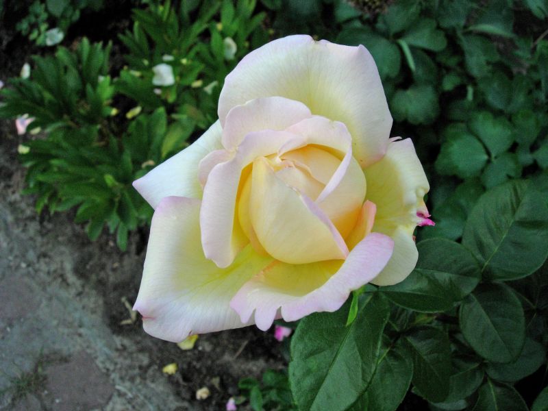 Tak, jeden krzak Peace. Mam pojedyncze róże. Ta róża tak ma, że jej kwiaty mogą się wybarwiać właśnie od żółci do żółci z bielą zakończoną różem. Zwykle jako charakterystyczna pokazywana jest roża jak na drugim zamieszczonym przeze mnie wcześniej zdjęciu, ale na tym samym krzaku bywają kwiaty różnie wybarwione.