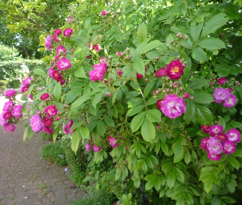 U mnie obok rośnie róża Lustige i czerwona stara róża NN