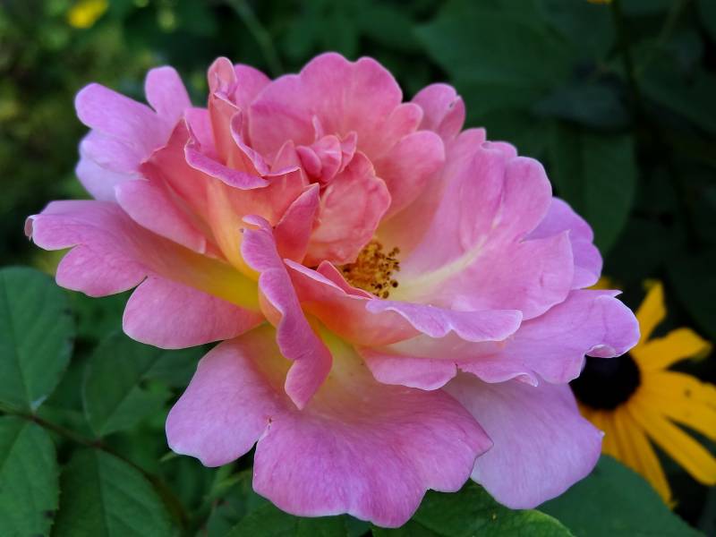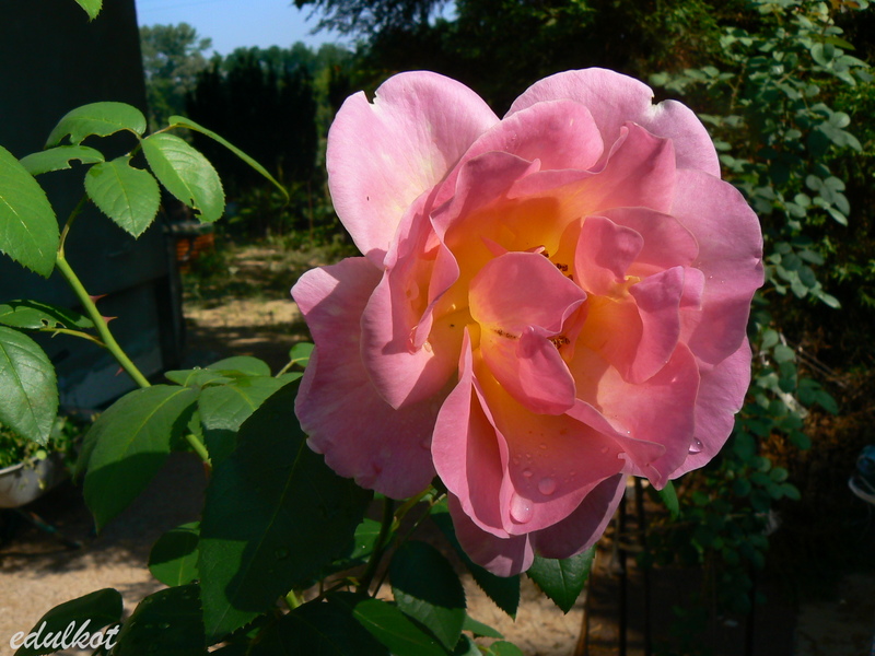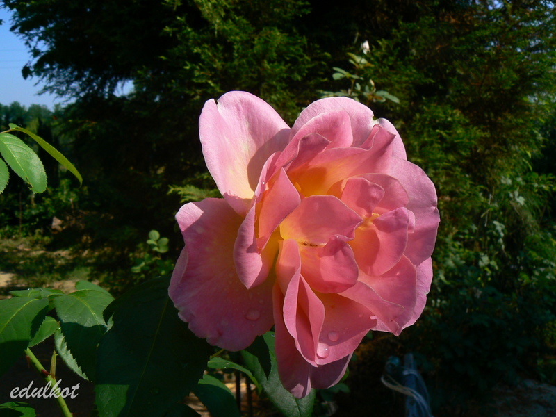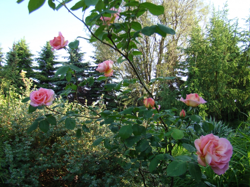 Jest to róża mająca manię wysokości, bo nawet przycięta do ziemi jak w tym roku, rośnie jak głupia i kwitnie dopiero jak osiągnie sporą wysokość. Trochę mnie to wkurza, wiosną już się z nią pożegnałam a ona zakwitła w lipcu na wysokości 1,5 m