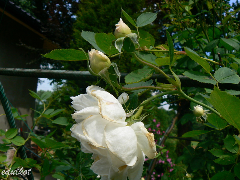 W końcu przerosła górę łuku i choć nie kwitła jeszcze spektakularnie ale bardzo mnie cieszyła.