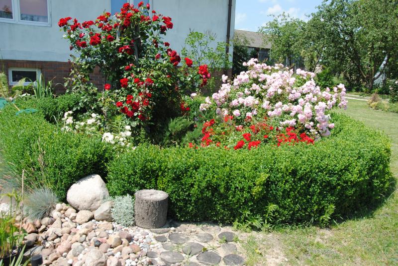 Zgodzę się ze wszystkim, co zostało wyżej napisane z wyjątkiem zwartego pokroju ;) . Bonica ma dość wiotkie pędy, a kwiatów mnóstwo. Co roku musiałam podwiązywać i podpierać, od tego roku ma gustowną podporę i wreszcie spełnia wszelkie kryteria róży idealnej :kocham