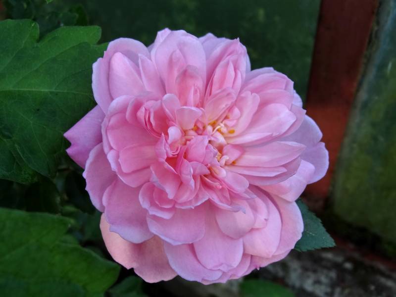 Kwiaty średniej wielkości, pełne, płaskie. Zapach delikatny określany jako jabłkowy. Kwitnie raz w sezonie w czerwcu.