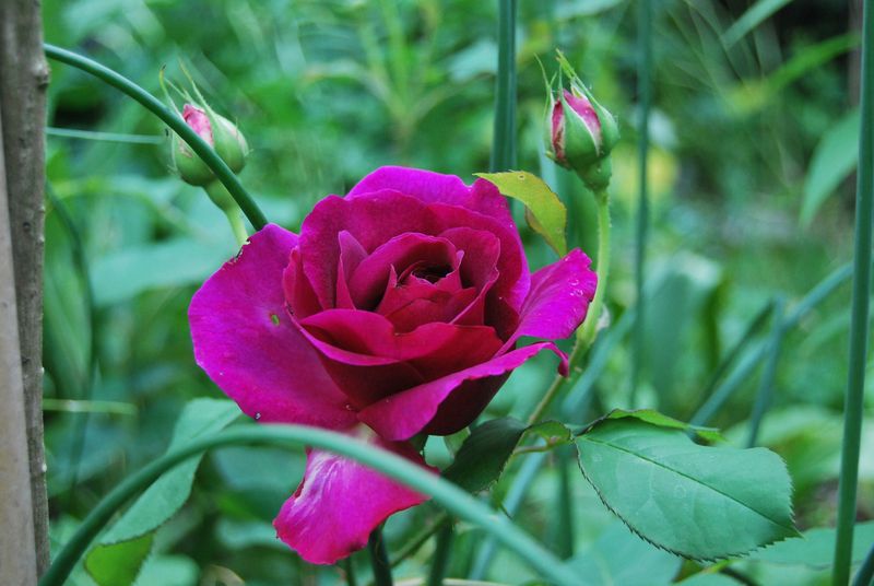 Róża pełna wigoru, szybko zbudowała krzak z naprawdę marnej sadzonki (była kupowana z tzw. "ostatnich sztuk" we Floribundzie, a na dodatek przeleżała tydzień w punkcie odbioru przesyłek)