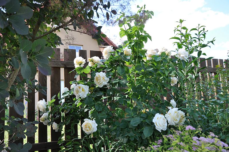 Piękna róża. U mnie zawsze zdrowa, silnie rosnąca i bujnie kwitnąca. Na zdjęciu poniżej, w różanym szpalerze, przedostatnia biała