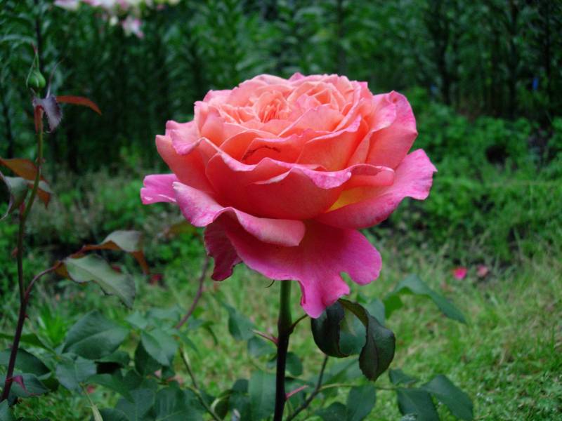 Róża wielkokwiatowa wyhodowana w 1996 roku przez Hansa Jürgena Eversa (firma Rosen Tantau)