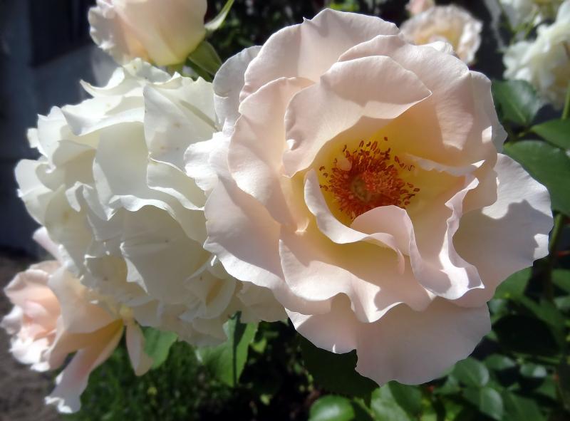 Kwiaty piękne w kształcie, bardzo duże, kremowe. Zapach delikatny.