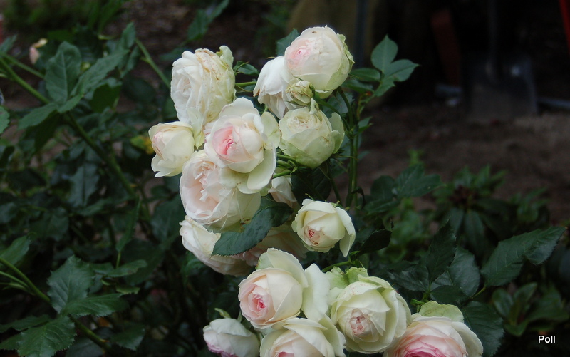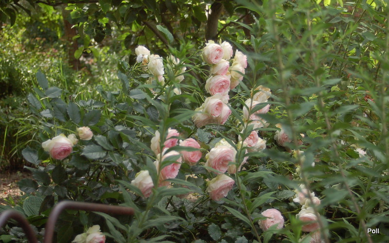 Róża Ed Sharazan właśnie kwitnie- jej kwiatostany są dość ciężkie i lekko się zwieszają. Chyba powinnam zastosować jakąś podpórkę?