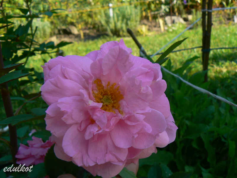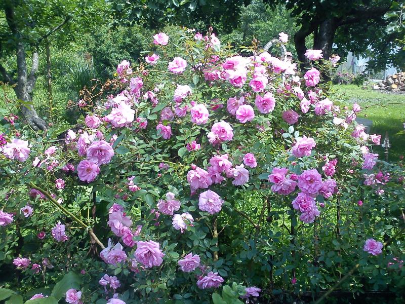 Kwiaty duże, półpełne do pełnych, różowe. Literatura wspomina o niezbyt doskonałym kształcie kwiatów, czego nie potwierdzam. Niestety, nie mogę również potwierdzić informacji o korzennym zapachu, enigmatycznie stwierdzę tylko, że róża wygląda, jakby pachniała