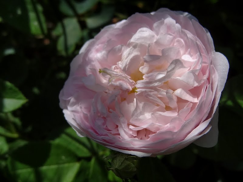 Kwiaty jasno różowe o średnicy ok. 7 cm. Bardzo pełne o budowie ćwierćrozetowej.