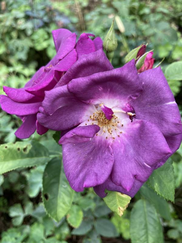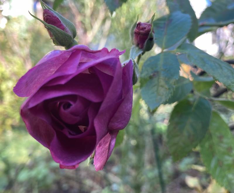 Moja pienna róża 'Rhapsody in Blue' odeszła w zaświaty parę lat temu, ale postanowiłam w zeszłym roku sobie sprawić nową, tym razem już nie w formie piennej. Zasadziłam ją w kartonie, jako że dostała miejscówkę po innej zmarniałej róży.
