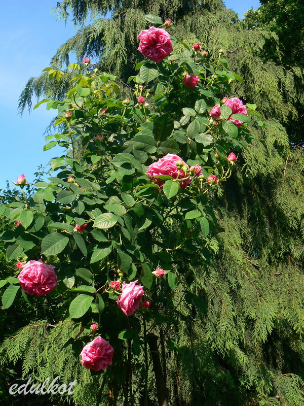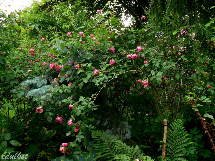 To tylko slogany, bo po czasie okazało się, że to nie jest róża stworzona przez Geschwinda i wcale nie jest chorowita, a ja ją wcisnęłam z dala od uczęszczanych ścieżek. Jedyna jej wada to brzydkie starzenie się kwiatów, które trzeba obcinać bo sama ich nie zrzuca.