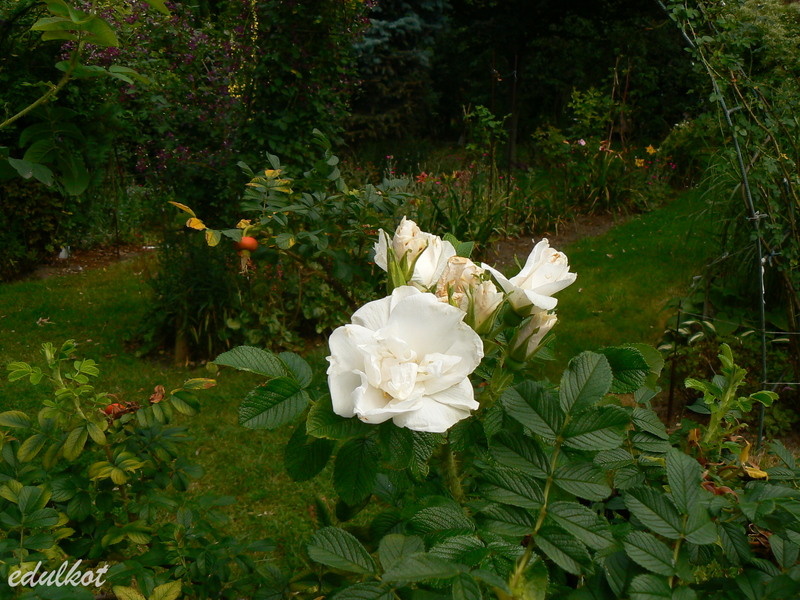 Do tych plusów muszę dodać jeden, ale wielki minus, wystarczy trochę deszczu, a pączki robią się brązowawe, do tego nie czyści się i jej uschnięte rude płatki wiszą potem na końcach pędów, trzeba je usuwać ręcznie, a nie jest to takie proste przy jej wielkości i obecności kolców wszędzie.