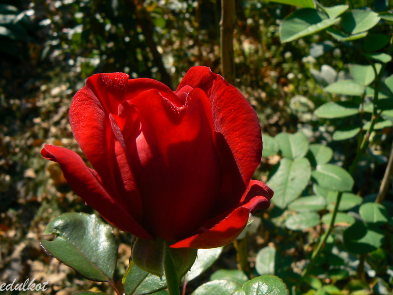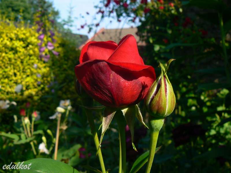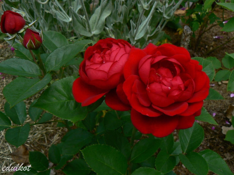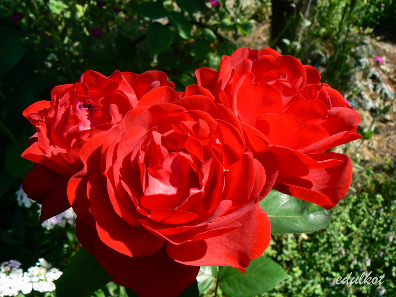 Kwiaty: ciemnoczerwone, duże srednicy ok. 10 cm, podwójne (25 płatków), kwitnie bukietami cały sezon,