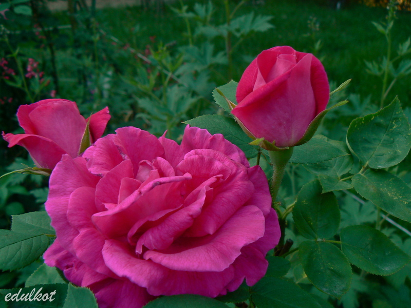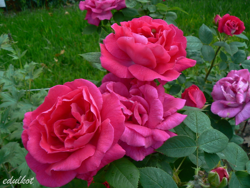 Odcień kwiatów zależy od oświetlenia i etapu rozkwitu, w słońcu wyraźnie wpada w róż, a w cieniu i jak kwiatek przekwita wyraźnie przebija fiolet.