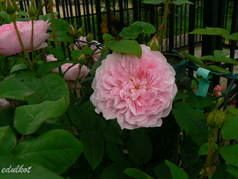 Kwiaty: jasnoróżowe, płatki zewnętrze jaśniejsze, typowe dla angielskich róż, o budowie rozetowej, bardzo pełne (70-95 płatków),średnica 7 -9 cm, kwitnie wyjątkowo obficie i regularnie.