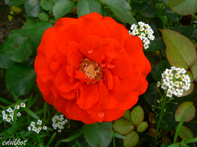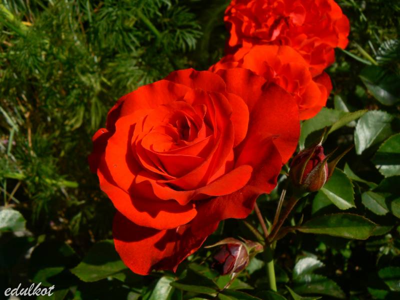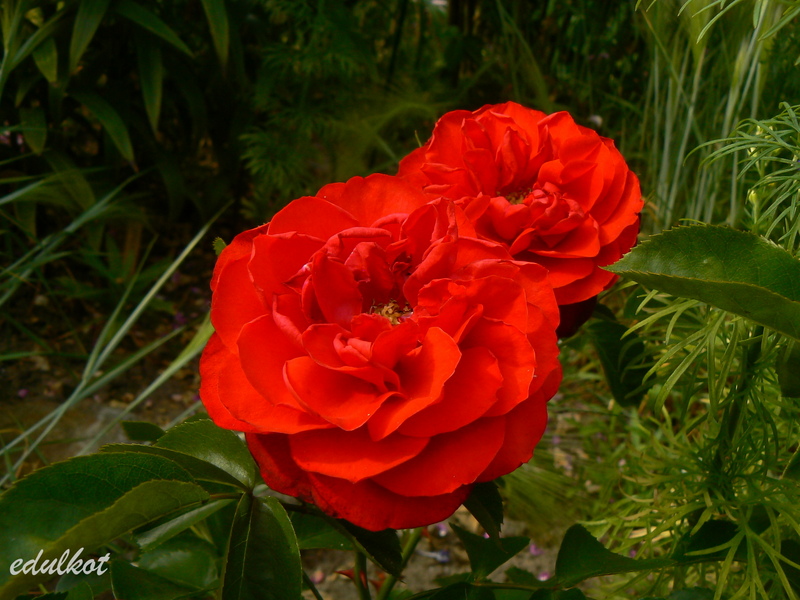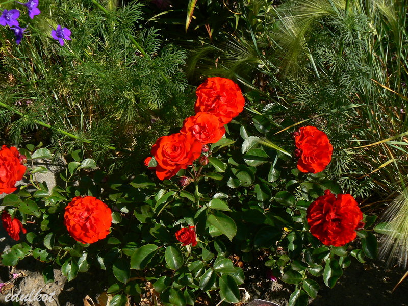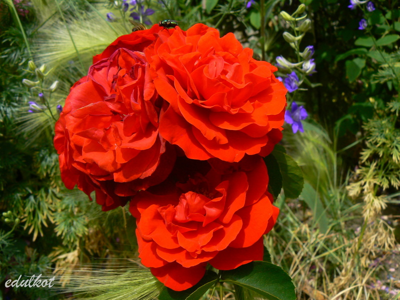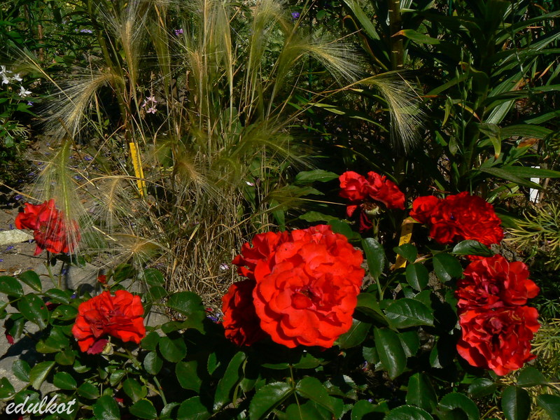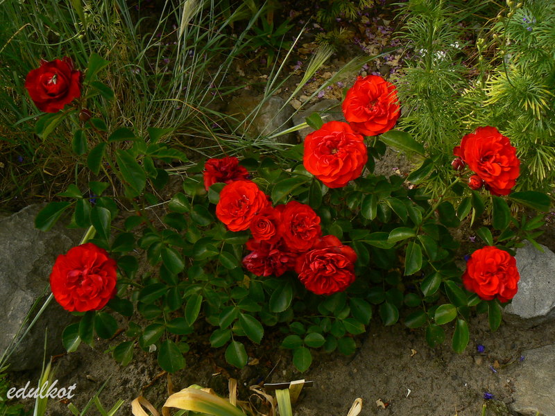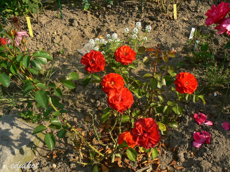 Kwiaty: średnie, półpełne czerwone, kwitnie rzutami przez cały sezon,