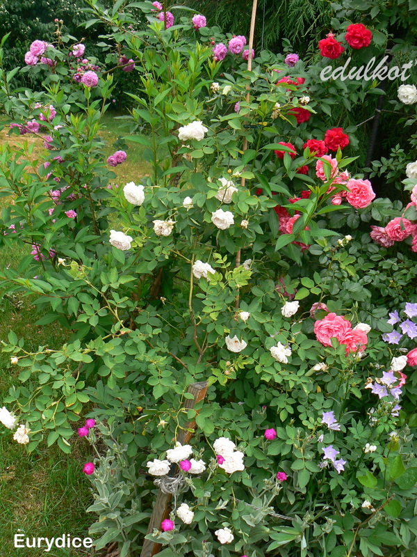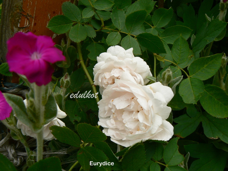 Wszystko byłoby pięknie tylko to co można kupić jako "Eurydice" - róża Geschwinda nią niestety nie jest. Według starych opisów oryginalna "Eurydice" miała kwiaty duże, podwójne, kuliste, potem filiżanki, karmin-różowe.