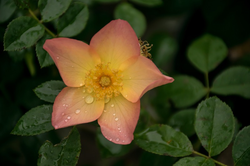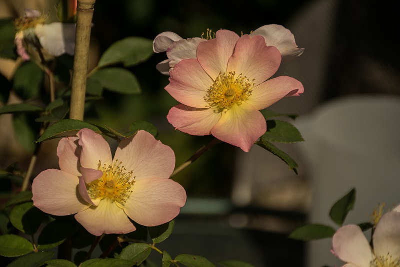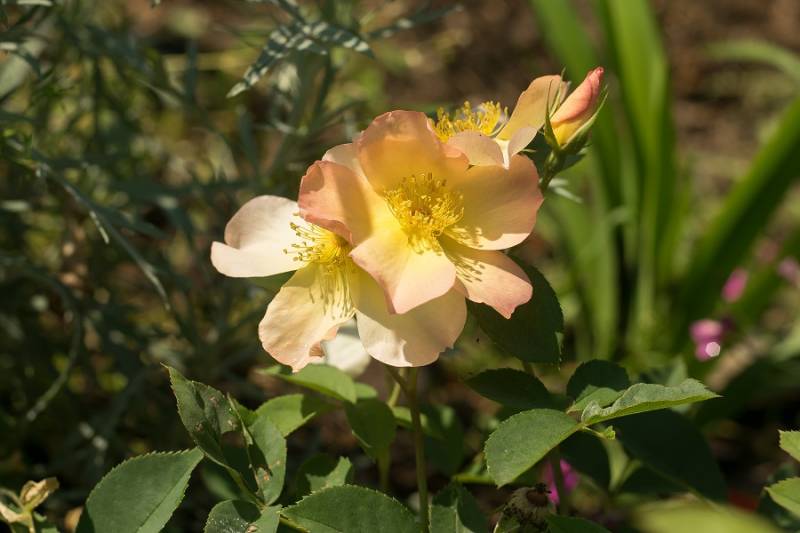 Kwiaty pojedyncze, delikatne o dwukolorowym wybarwieniu: róż z odcieniem miedzi zaraz po otwarciu pąka (potem blednie) i delikatny żółty.