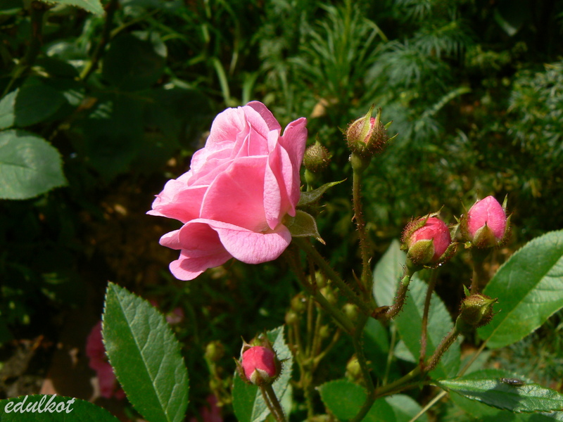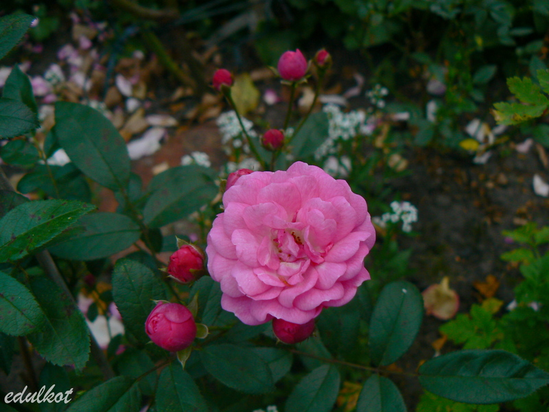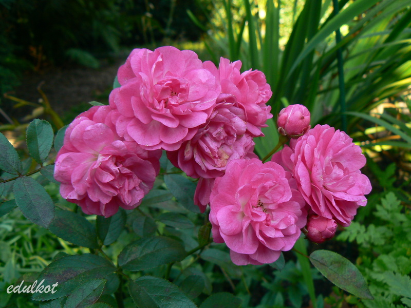 Niewielka rozmiarami, ale wielka duchem różyczka, która usiłuje obficie kwitnąć w każdym miejscu gdzie ją posadzę, już 3 razy zmieniałam jej miejscówkę. Ma cieniutkie pędy, które nie utrzymują sporej ilości kwiatuszków jakie wytwarza w jednym bukieciku, dlatego potrzebuje mini podpory. Niestety podatna na plamistość.
