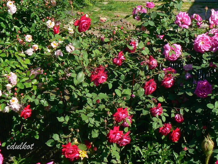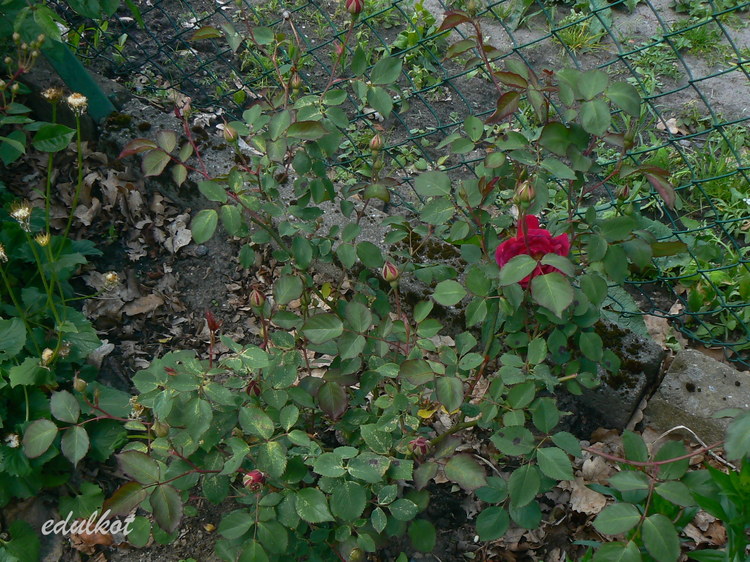 Przesadzałam ją z konieczności cieplejszego stanowiska, bardzo szybko nadrobiła straty i wyrosła na spory krzak. Jak to Geschwindka cierpi na czarną plamistość i pomimo gołych pędów śmiało kwitnie.