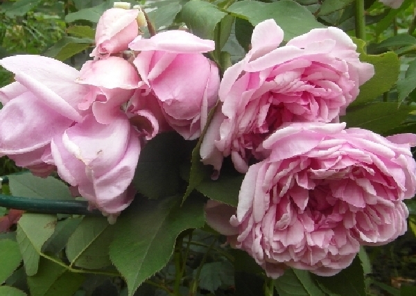 Kwiaty wielkości 7-8 cm, pełne, kształtu rozety z zaznaczonym środkiem, koloru różowego o zimnym lawendowym odcieniu. Płatki dość miękkie, nie służy im deszczowa pogoda. Nie opadają po przekwitnięciu, trzeba je obrywać, co pobudza różę do dalszego kwitnienia. Pachnie zapachem starych róż.