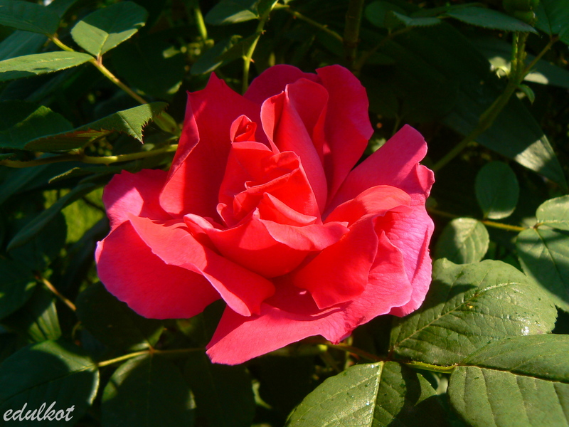 Moja róża rośnie w cieniu Madame Isaac Pereire i musi walczyć o swoje prawa, jest silna i mam nadzieję, że w końcu dorówna sąsiadce.