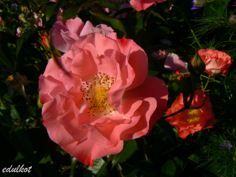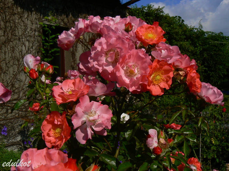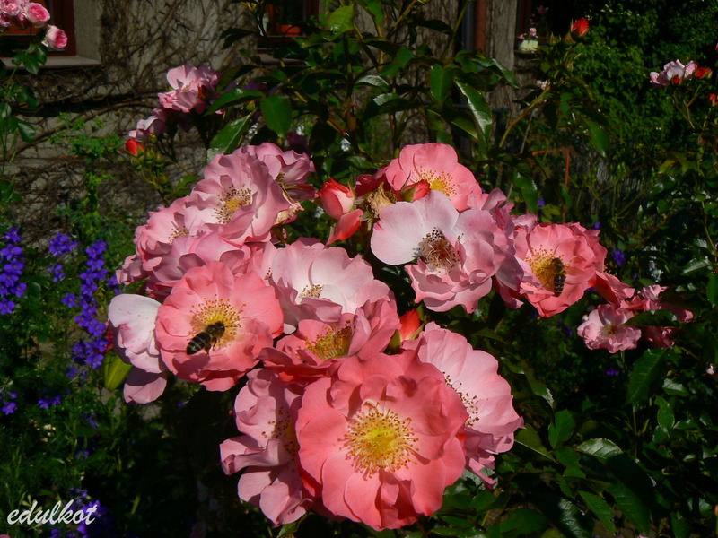 Zasiedziała róża, która każdego roku kwitnie bezproblemowo, nic jej nie przeszkadza, ani deszcz, ani słońce ani jesienne przymrozki. Uwielbiana przez owady bo śmiało pokazuje swoje pręciki.