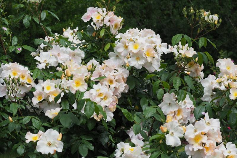Krzak w całości oblepiły prawie białe kwiaty, z daleka wołała przyjdź do mnie zdziwko