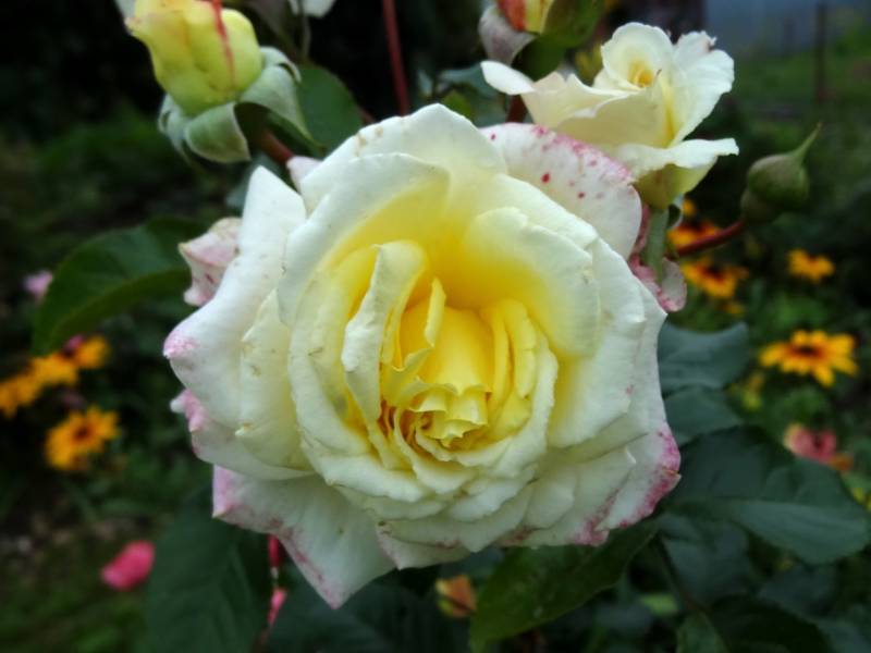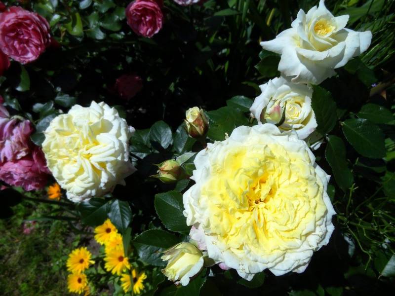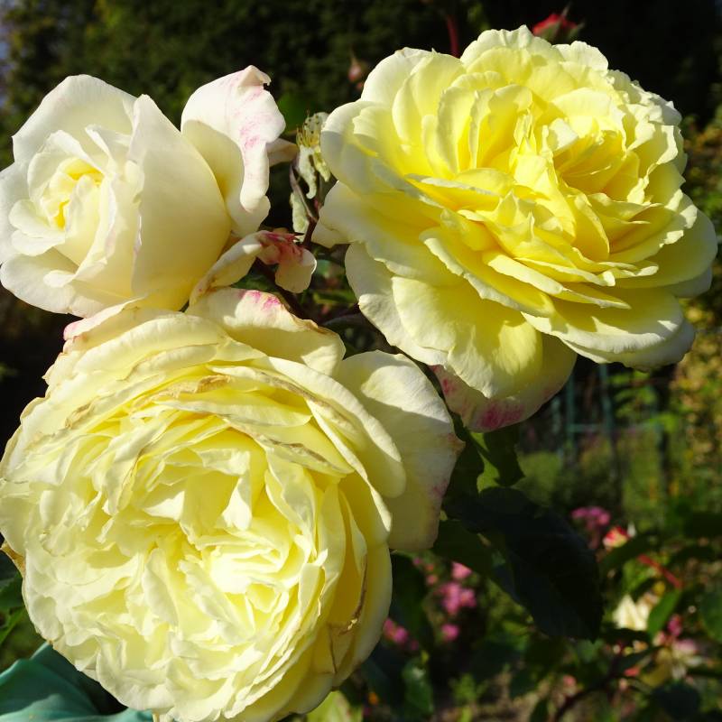 Kwiaty duże, bardzo pełne w różnych odcieniach żółci. Pachnie. Kwitnie przez cały sezon.