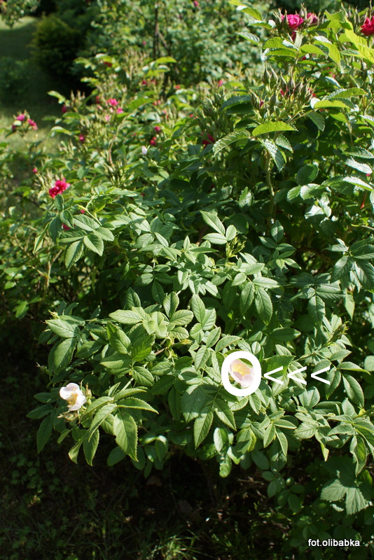 Mam nowy problem question Kupiłam kilka lat temu różę F.J. Grootendorst, teraz to już ponad 1,5 metrowe krzaczysko i właśnie w jego środku wyrosła jakaś dzikuska, :nie_wiem multiflora? Nie mam pojęcia jak ją z tego środka można usunąć :dry: