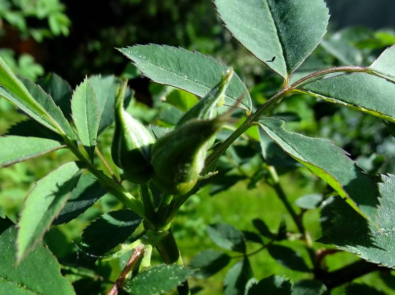 U mnie tylko Rosa spinosissima var. altaica ma pączki. Nawet rugosy jeszcze nie mają.