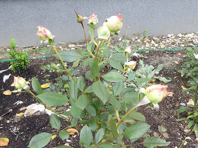 Souvenir de Victor Landeau ma świeżo rozwijający się pączek, który nawet ładnie wygląda, reszta bardziej rozwinięte zgniła