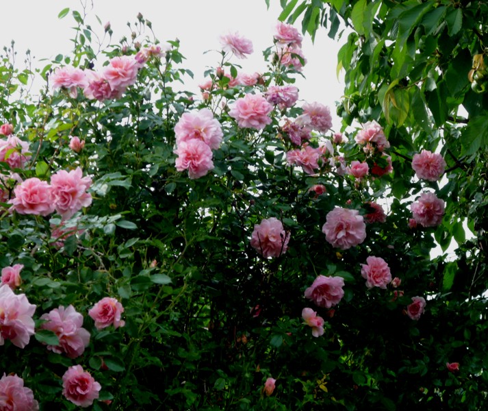 Emelie rośnie na tej samej pergoli z róża New Dawn .I chociaż Emelie nie pachnie, to rośnie zdrowo a wczesną wiosną jej kwiaty naprawdę cieszą :kocham