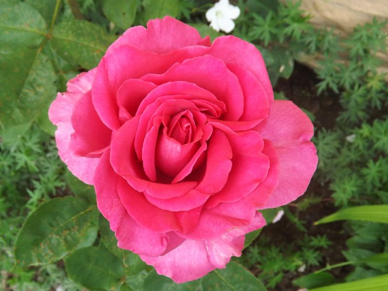 Pozwólcie jeszcze, że przedstawię Wam swoją pierwszą różę. Jakieś 12 lat wstecz pojechałam z M do szkółki po iglaki . Przy szkółce w koleinie na drodze, leżał ze zmiażdzónymi gałązkami krzaczek róży. Zabrałam go za zgodą właściciela / po co komu taki kłujoch?/ W tym roku ktoś mi powiedział, że to chyba jakaś odmiana floribundy...