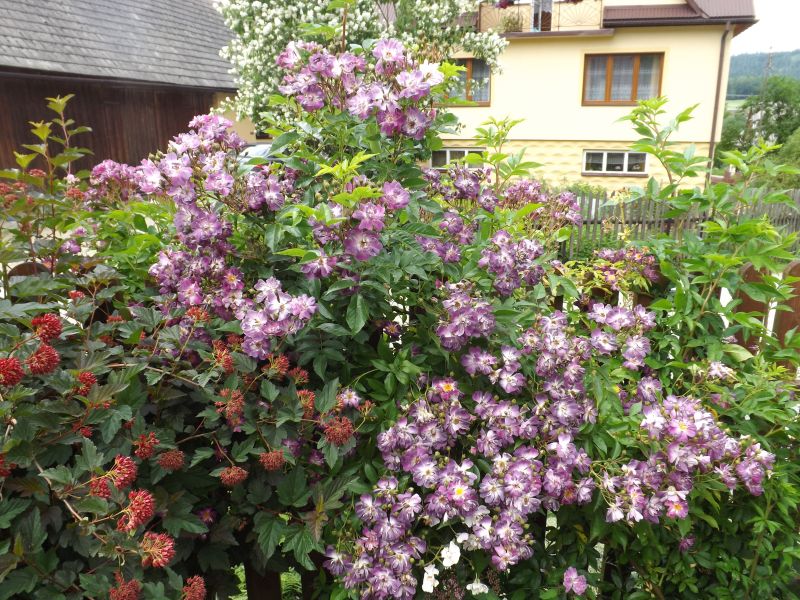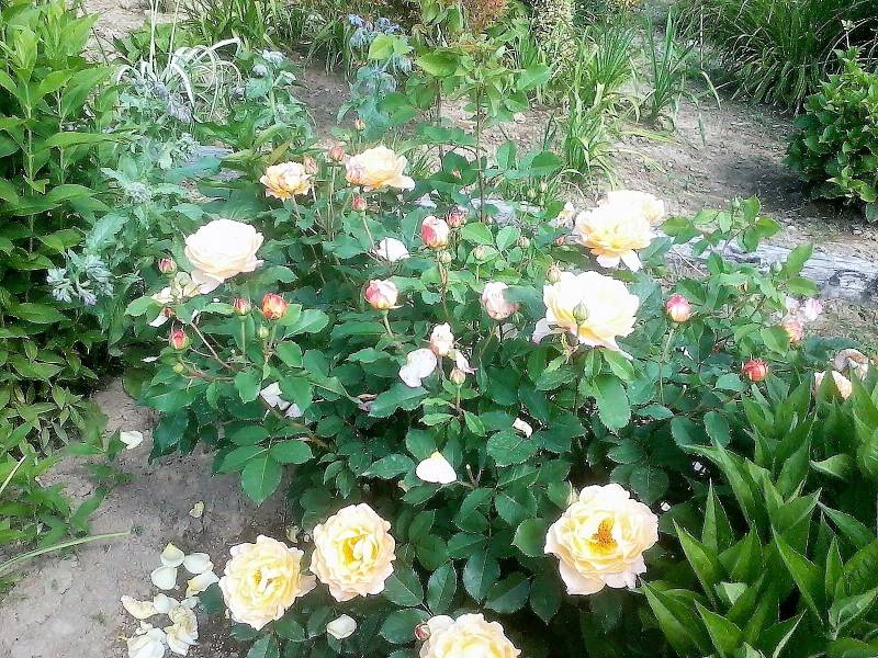 Utarsens Rosenprizzessin kwiatów miała w tym roku najwięcej ale ma strasznie wiotkie łodygi i bez podwiązywania by sie nie utrzymały w pionie,zobaczymy jak bądzie się zachowywać w następnych latach