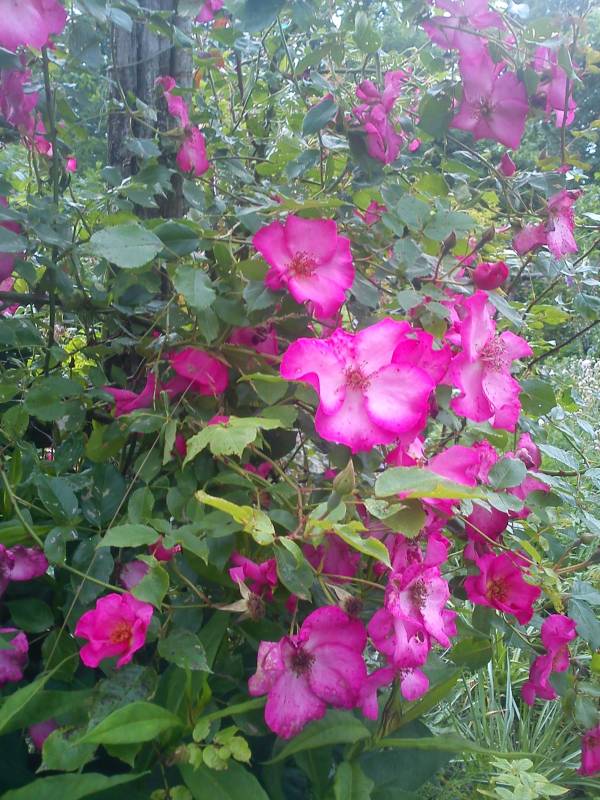W tym sezonie najbardziej zauroczyła mnie młodziutka, bo dopiero dwuletnia Bajazzo. Ilość i piekno kwiatów, robudowany krzew, zdrowotność sprawiła, że w czerwcu nie było drugiej takiej. Szkoda tylko, że na drugie kwitnienie ciągle każe czekać, to zdecydowanie jest zbyt długie