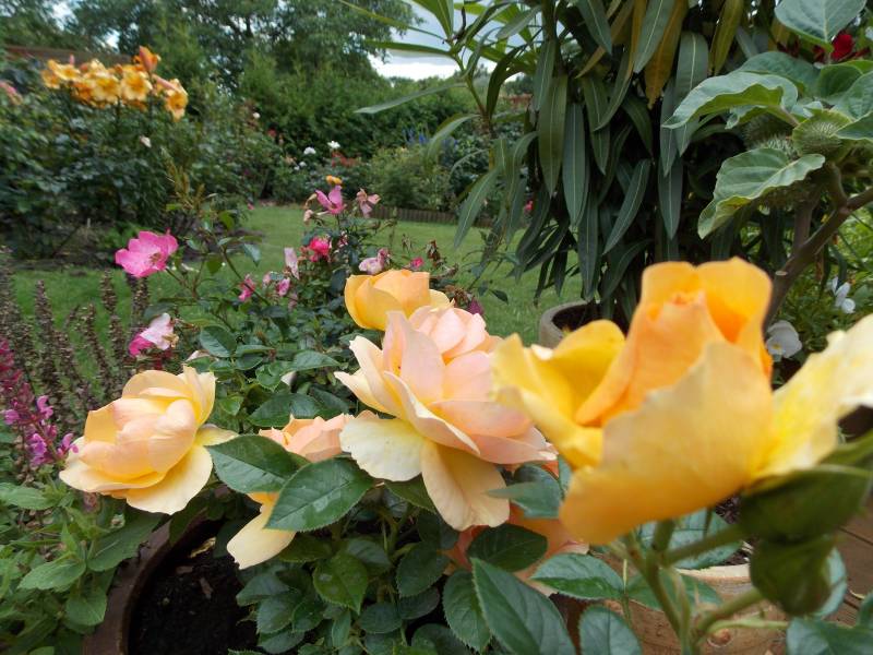 O tej róży słyszałam naprawdę dużo dobroego, ale dopiero teraz trafiła do ogrodu. I choć niewiele mogę powiedzieć o jej trwałości, mrozoodporności czy podatności na choroby, to jedno wiem na pewno - jest urocza. Kwiaty zwracają uwagę ciepłą żółcią i bogactwem kwitnienia. Lubię róże, które kwitną całym krzewem i tak dzieje się w przypadku mojej H.R. Posadzona została do doniczki, by wzmocnić korzeń.