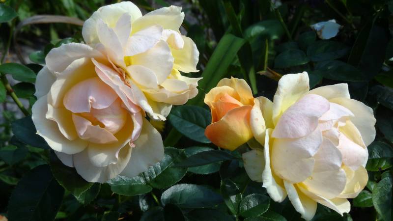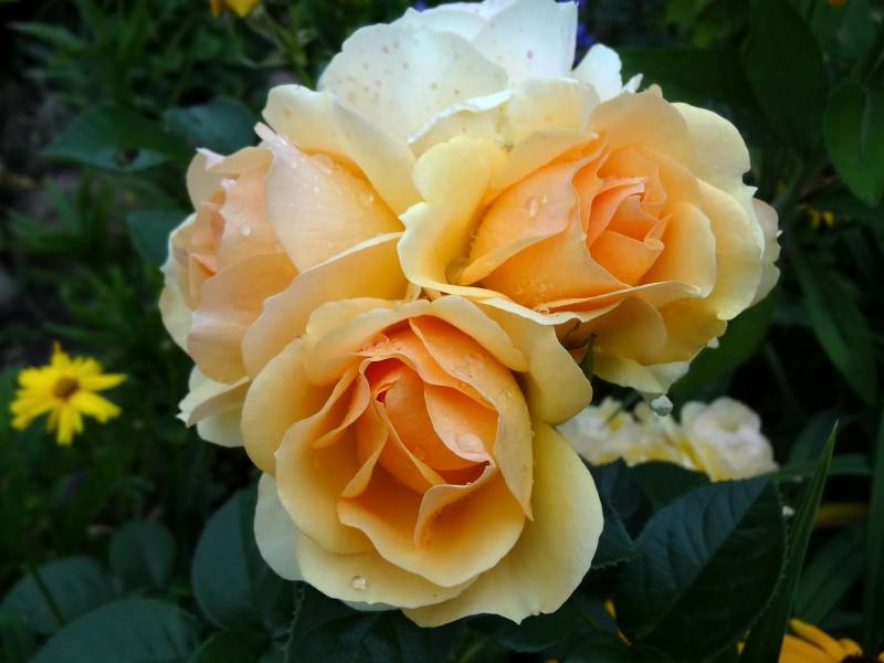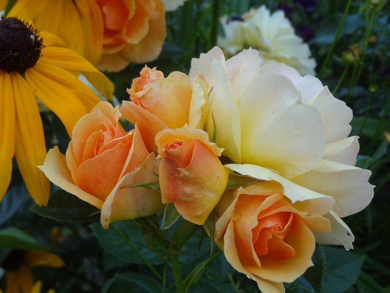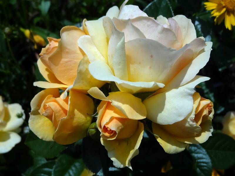 Kwiaty półpełne o pięknym bursztynowym kolorze. Z czasem bledną. Kwiaty w bukietach po kilka. Zapach delikatny.