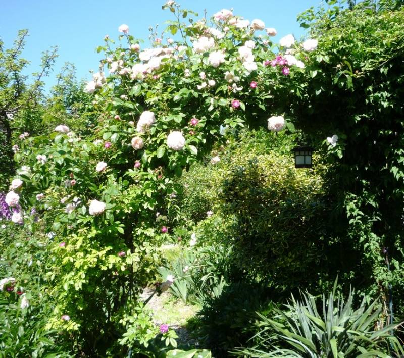 Róża Rose de Tolbiac rośnie przy pergoli łuku myślę ,że przy ścianie byłaby lepiej wyeksponowana .