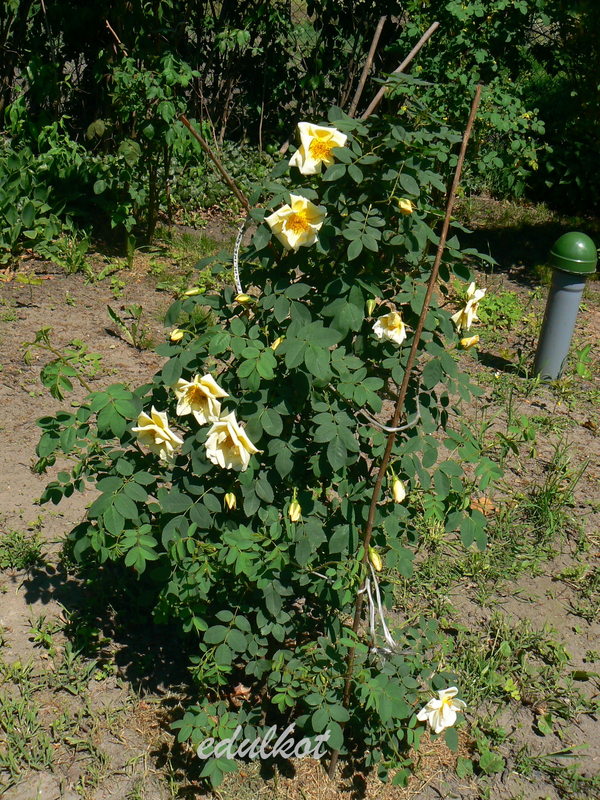 Róża krzewiasta, Hybrid spinossima, krzyżówka róż: Joanna Hill x R. spinossima,