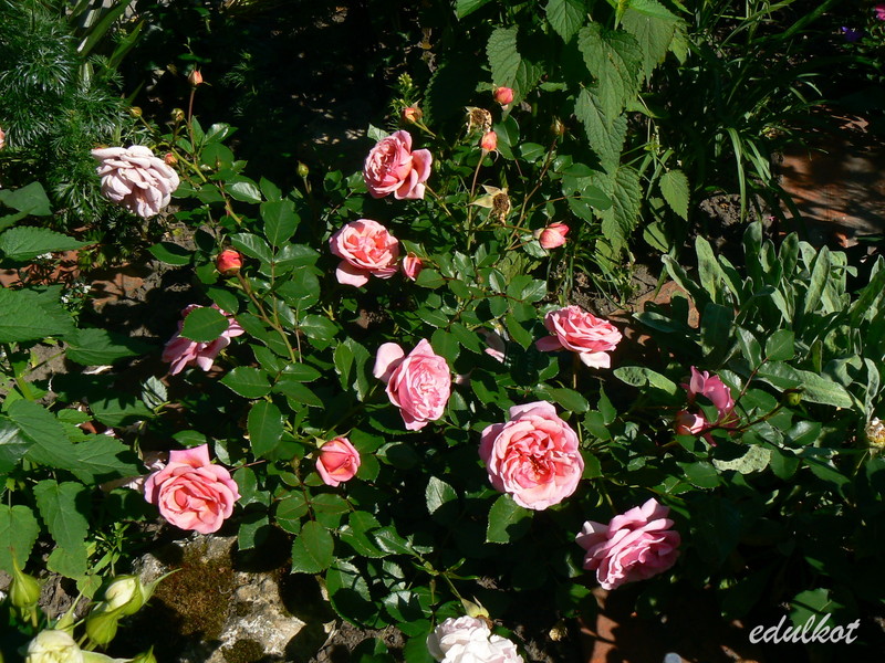 Nowa róża perska a już od początku miała wigor. Co prawda przy ciągłych deszczach w lecie stała goła, ale dość szybko się zregenerowała i zawiązała nowe pączki. Pędy wyginają się pod ciężarem kwiatów co przy jej jak na razie nikłym wzroście nie wyglądało zbyt dobrze.