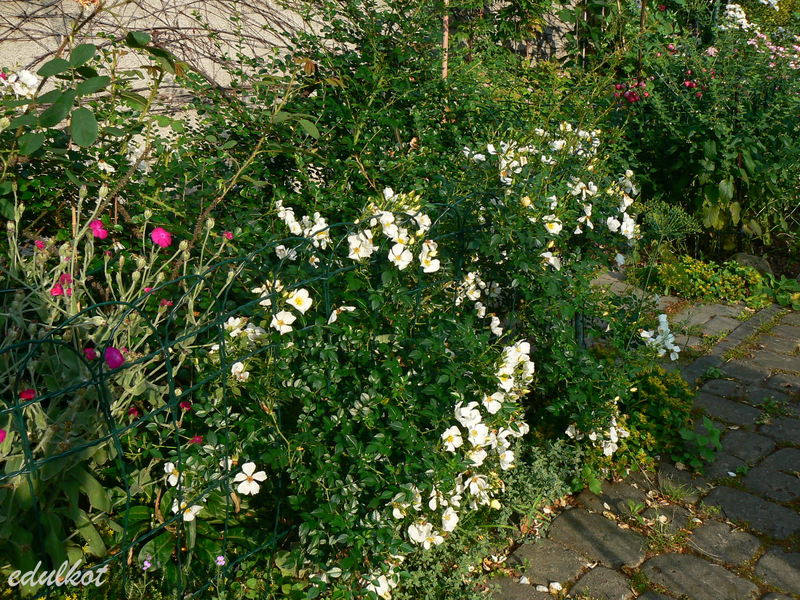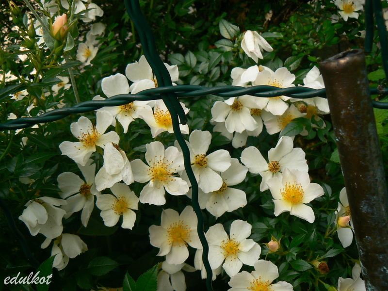 Skusiłam się na malutką, kompaktową różyczkę, kupując u Ćwików sugerowałam się jej wymiarami: wysokość 0,3 m, szerokość 0,4 m. Okazała się wielkim potworem, którego bardzo kolczaste pędy upinałam na płotku i na irdze. Teraz muszę ją wykopać i całkowicie nie mam pomysłu gdzie ją posadzić.