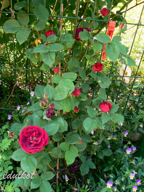 Róża ma tendencję do wybujałych pędów, dlatego pod ciężarem kwiatów pędy się pokładają.