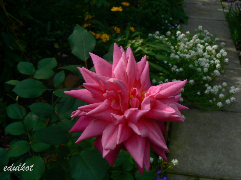 Kwiaty: duże, podwójne, różowo-purpurowe ?, powtarza kwitnienie