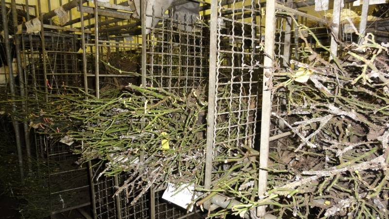 I odmiany dopiero co posadzone lądują w szklarni naprzeciw, gdzie są porządnie nawożone, by wytworzyły piękne młode listki i pąki