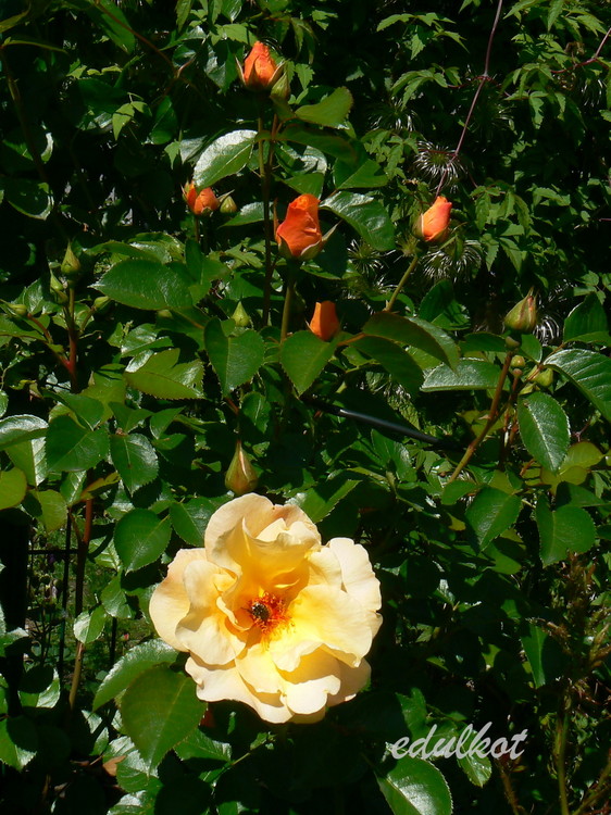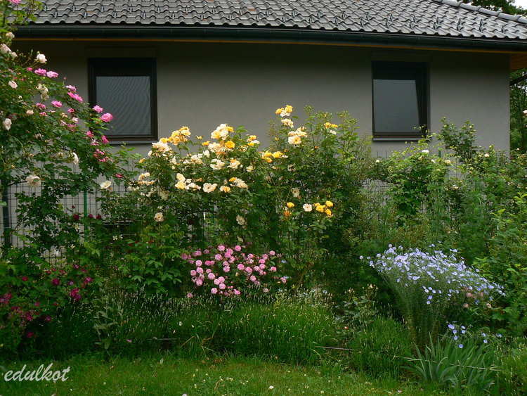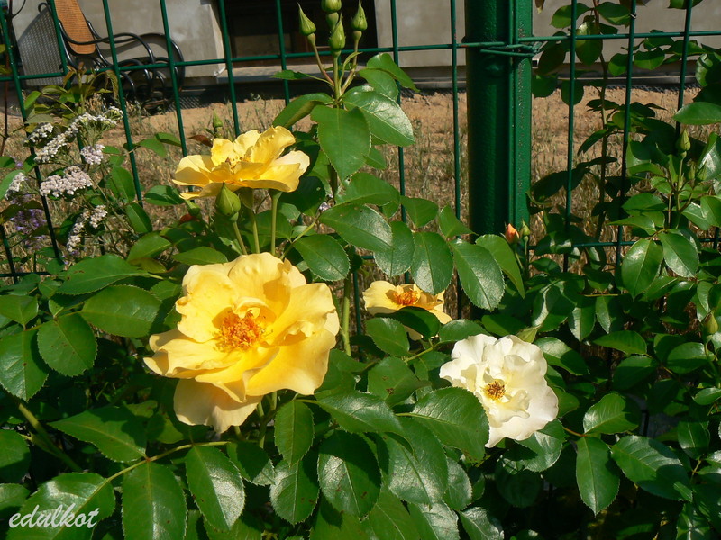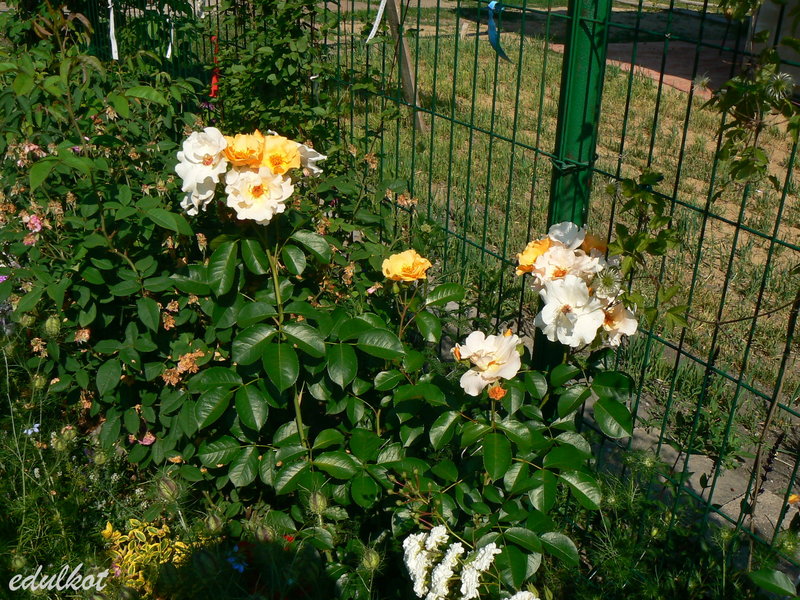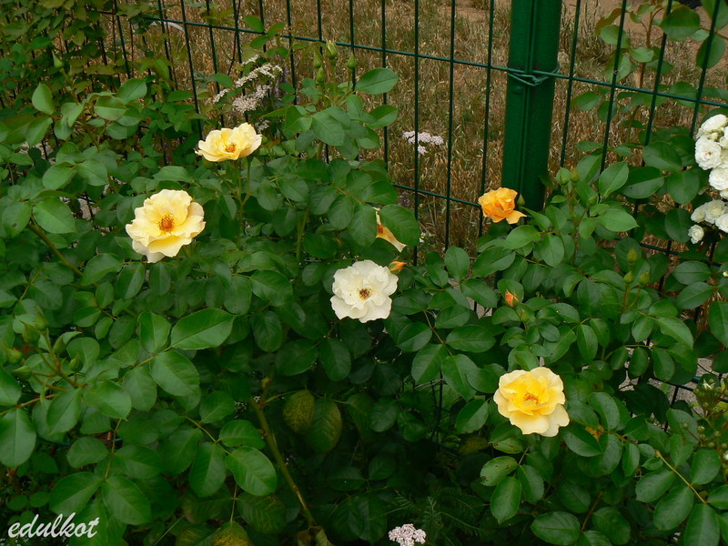 Powolutku się rozkrzewia, kwiatki ma śliczne z żółtymi pręcikami przechodzącymi w czerwony kolor. Wygląda na to, że jest odporna na choroby grzybowe bo do końca sezonu miała ładne liście, choć wyczytałam, że na czarną plamistość podatna. Słaba wytrzymałość na zmienne temperatury zimą i na przedwiośniu, w 2017 cięta do ziemi, ale do końca sezonu urosła do przeszło 2 m.