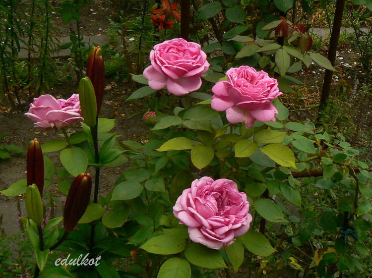 Kwiaty: duże, półpełne, miseczkowate, różowo-czerwone do szkarłatu, powtarza kwitnienie;