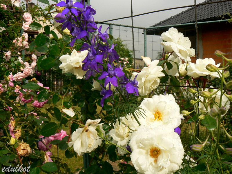 Ciężko idzie jej rośnięcie bo dopada ją plamistość, choć podobno ma być odporna na choroby, przycinać muszę ją do ziemi bo miewa uszkodzone pędy. Ale jak zakwitnie jest śliczna.